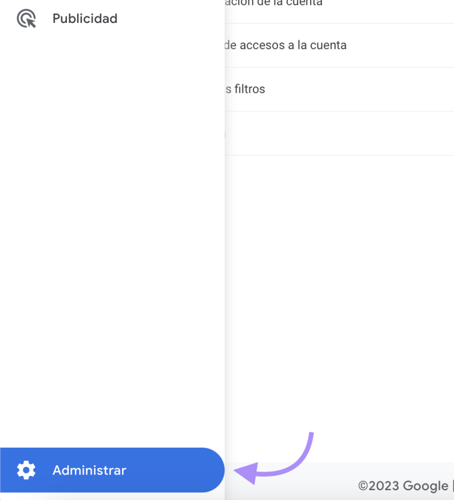 Haz clic en «Administrar» en la parte inferior izquierda de la interfaz de Google Analytics.